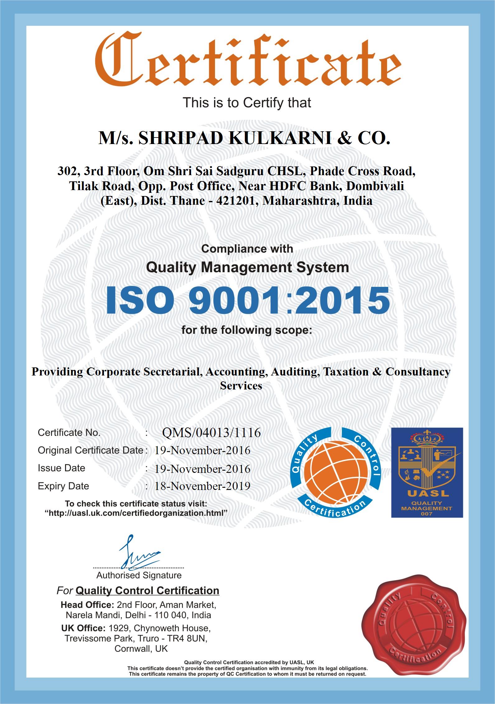 The Shripad Kulkarni & Co. Group is subjected to quality check by the Institute of Chartered Accountants of India (ICAI) in the form of Peer Review undertaken as per its guidelines issued from time to time.